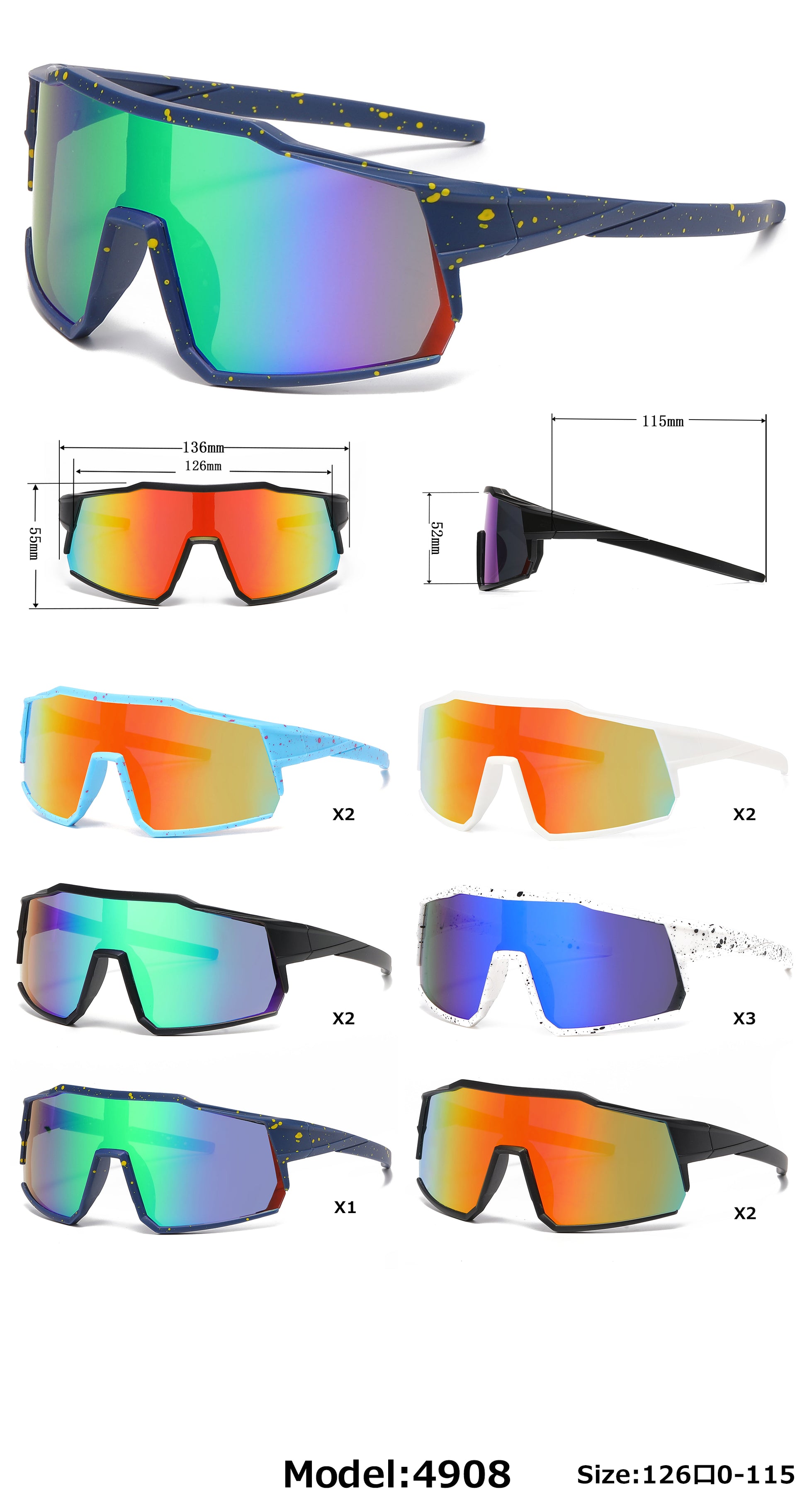 4908 - Kids Sport One Piece Shield Plastic Sunglasses with Color Mirrored Lens