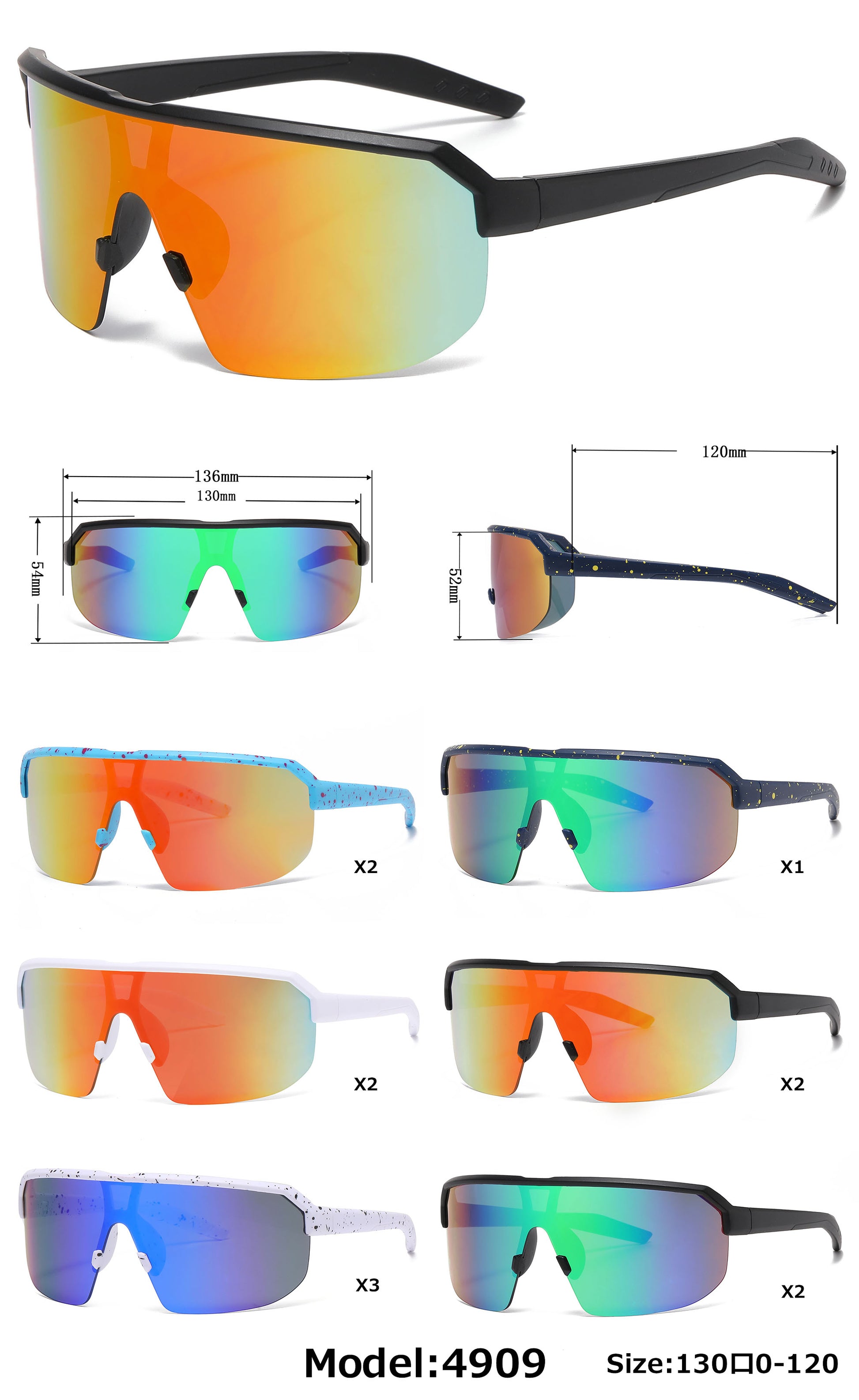 4909 - Kids Semi Rimless Color Mirror One Piece Shield Lens Sports Plastic Sunglasses
