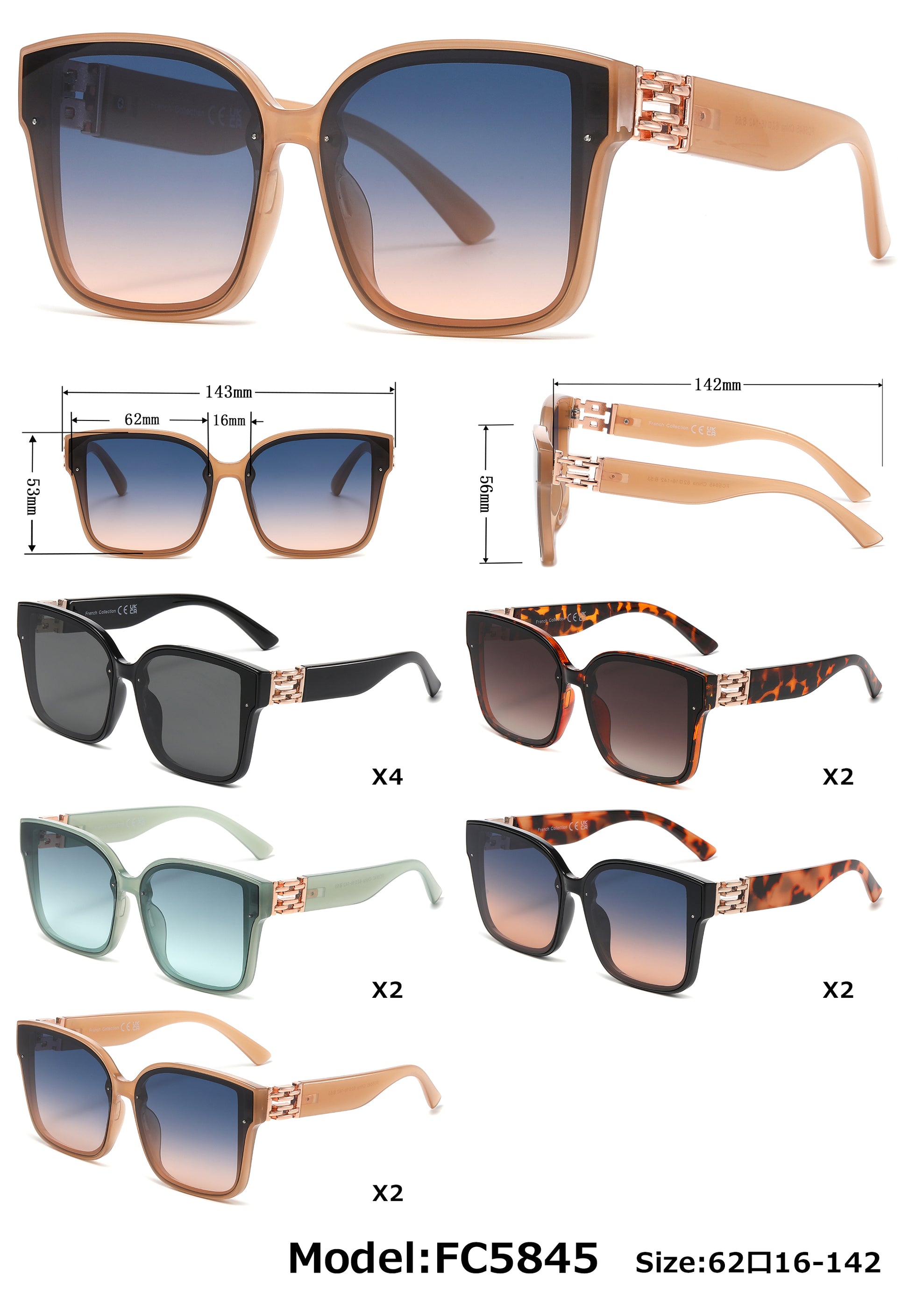 FC 5845 - Large Thick Square Frame with Metal Accent Temple Plastic Sunglasses