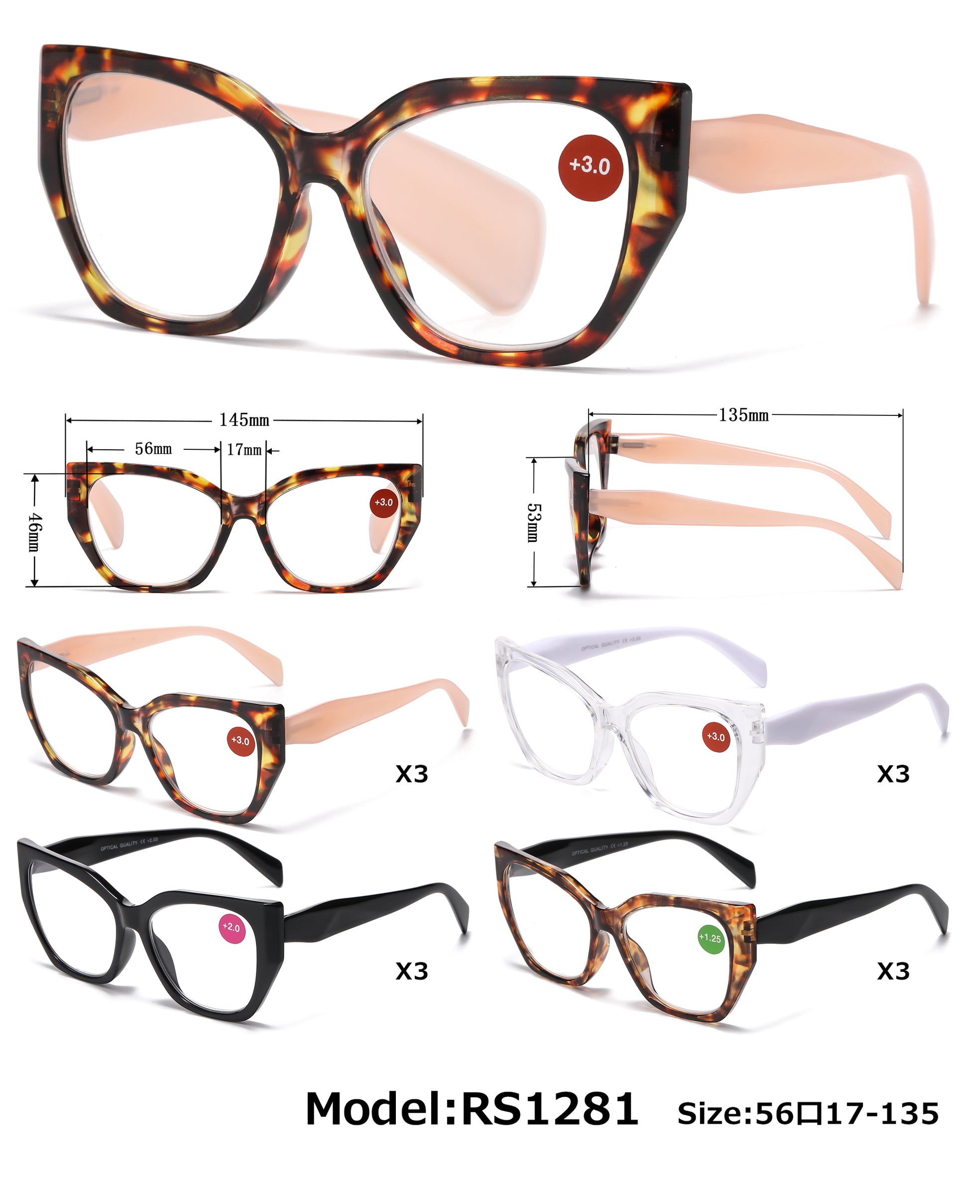 RS 1281 - Large Cat Eye Plastic Reading Glasses